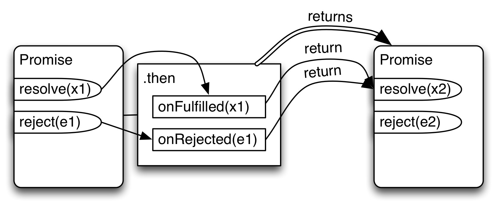 With chaining, the states of Promises become more complex (as covered by Sect. 25.4 of the ECMAScript 6 specification):