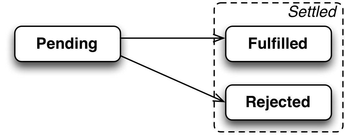 If you are only using Promises, you can normally adopt a simplified worldview and ignore locking-in. The most important state-related concept remains “settledness”: a Promise is settled if it is either fulfilled or rejected. After a Promise is settled, it doesn’t change, anymore (state and fulfillment or rejection value).